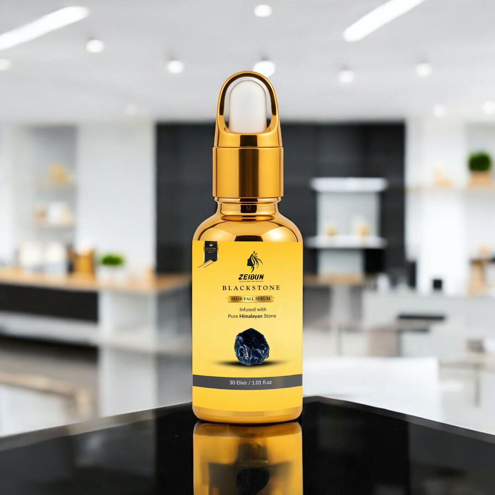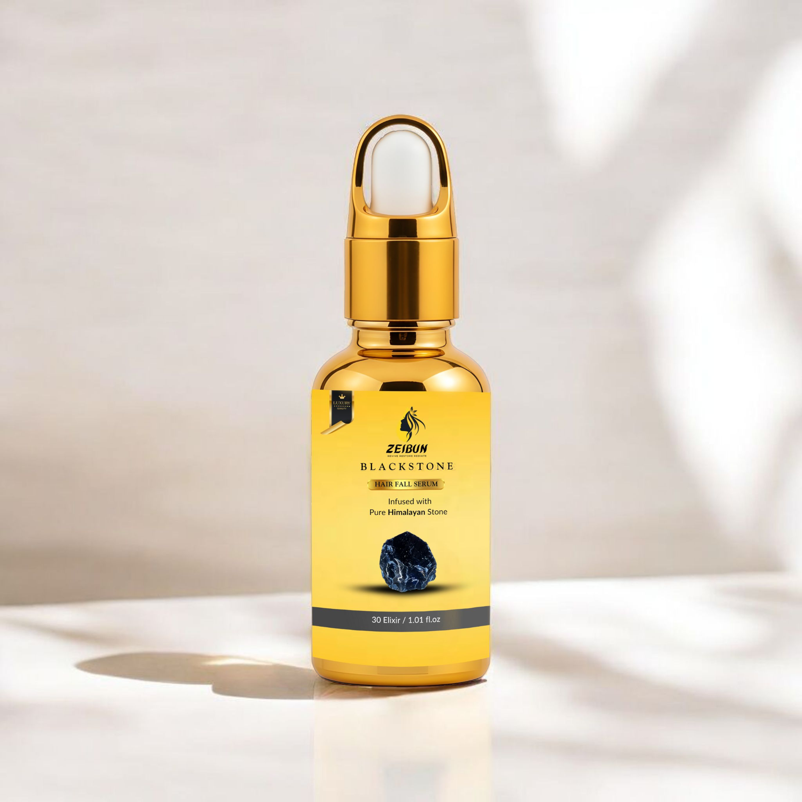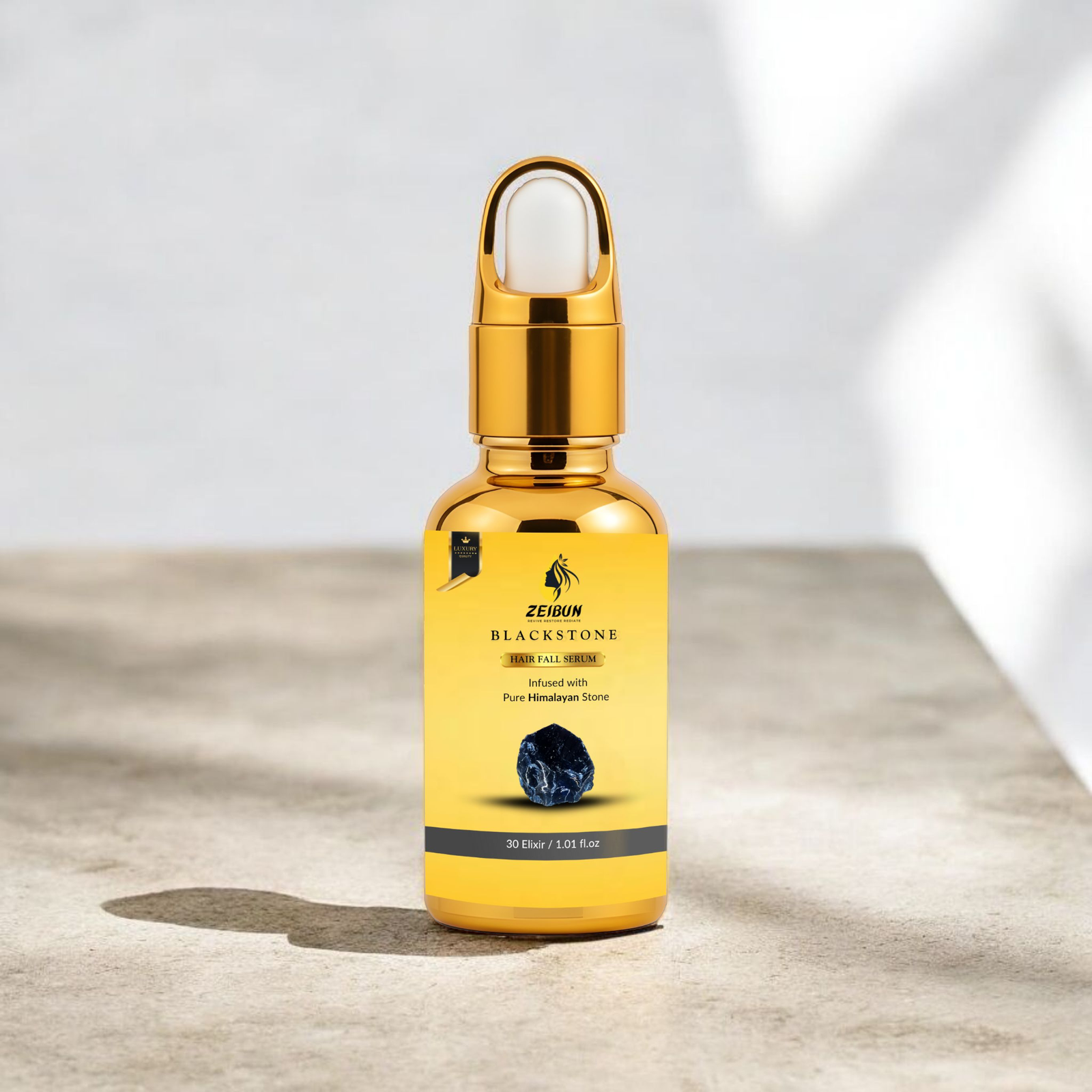 Introducing Black Stone Anti Hairfall Serum by Zeibun — a luxurious, nutrient-dense elixir powered by Pure Himalayan Stone Essence. Crafted in Pakistan, this premium serum is designed to reduce hair fall, nourish the scalp, and restore natural hair strength from root to tip.