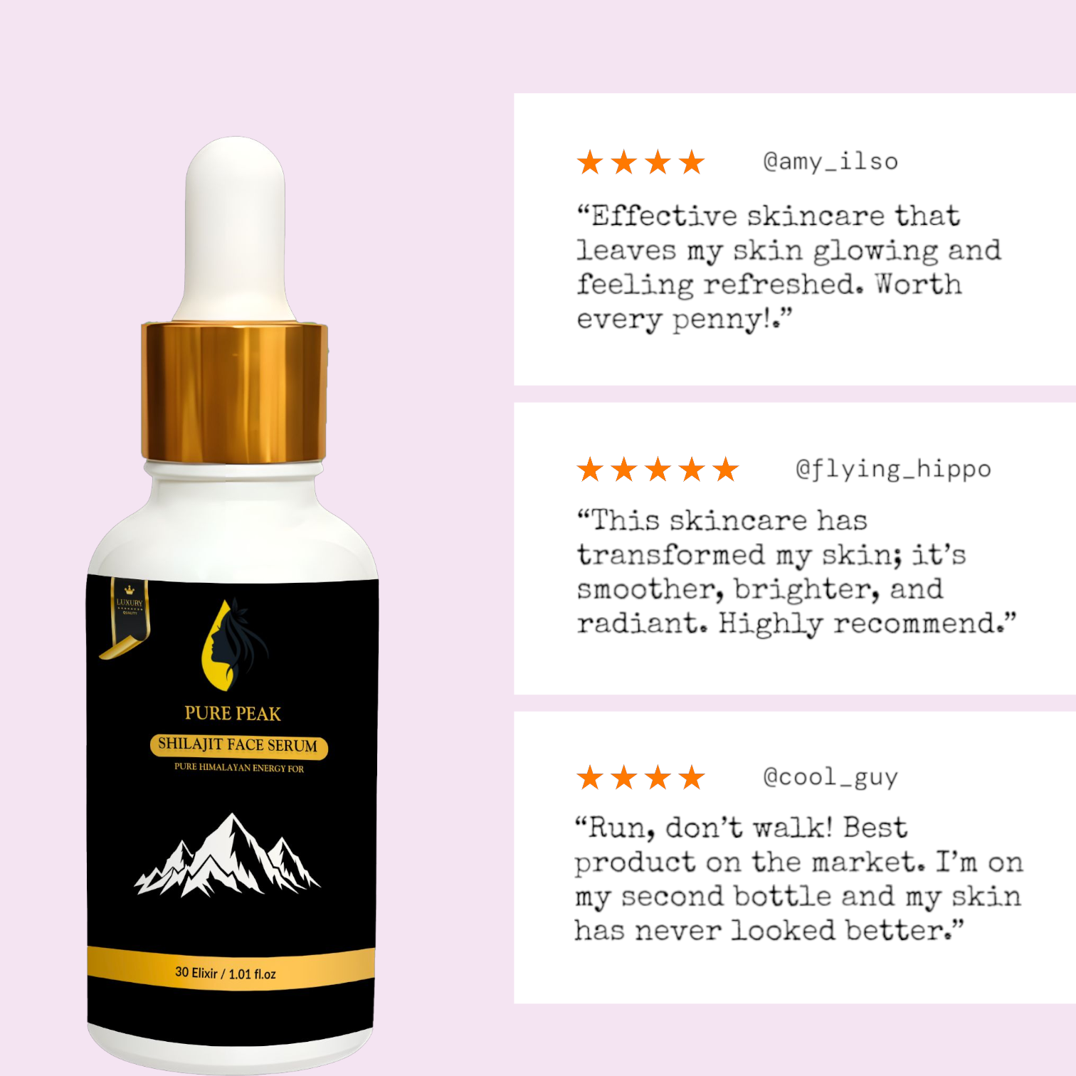 Himalayan Shilajit: Boosts vitality, strengthens skin barrier, and promotes a radiant glow.