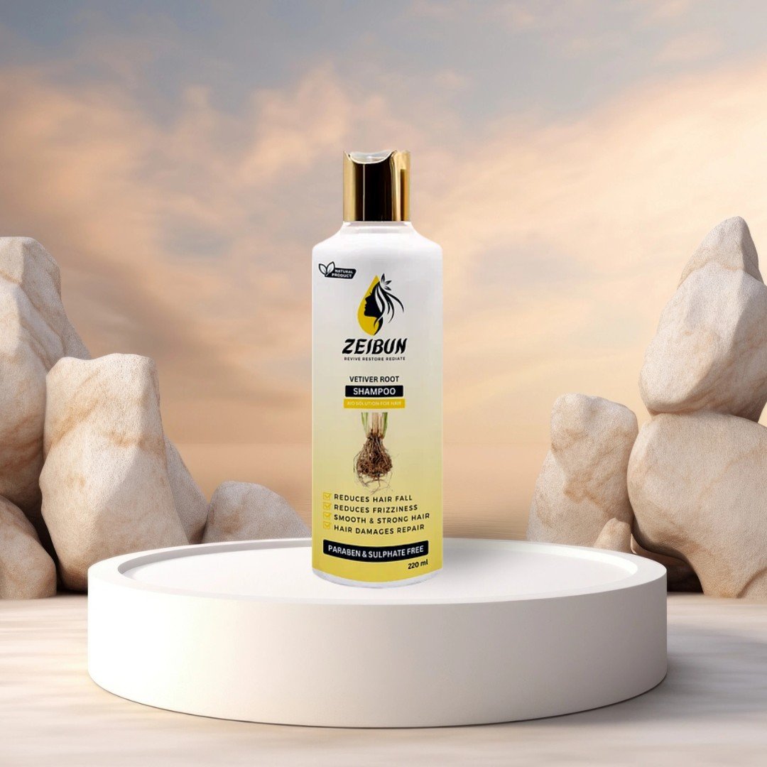 Experience the pure harmony of nature and science with Zeibun’s Vetiver Root Anti-Dandruff Shampoo — a 100% natural formula crafted to soothe the scalp, fight dandruff, and promote stronger, healthier hair.